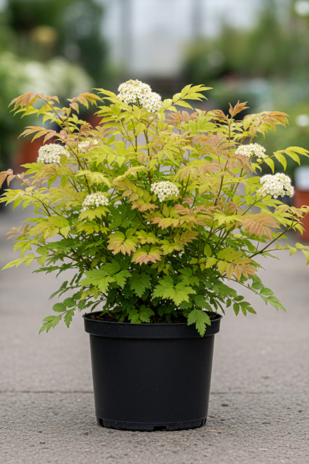 - Цветки белые, в крупных пирамидальных метелках.