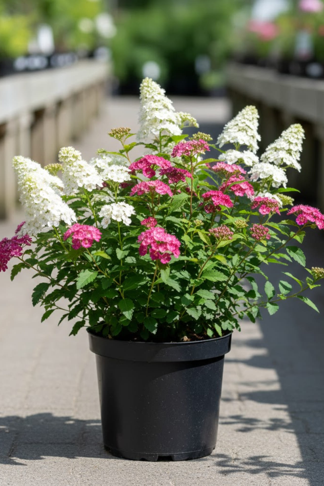 - На одном соцветии находятся цветы ярко белой, нежно розовой и лилово-красной окраски.