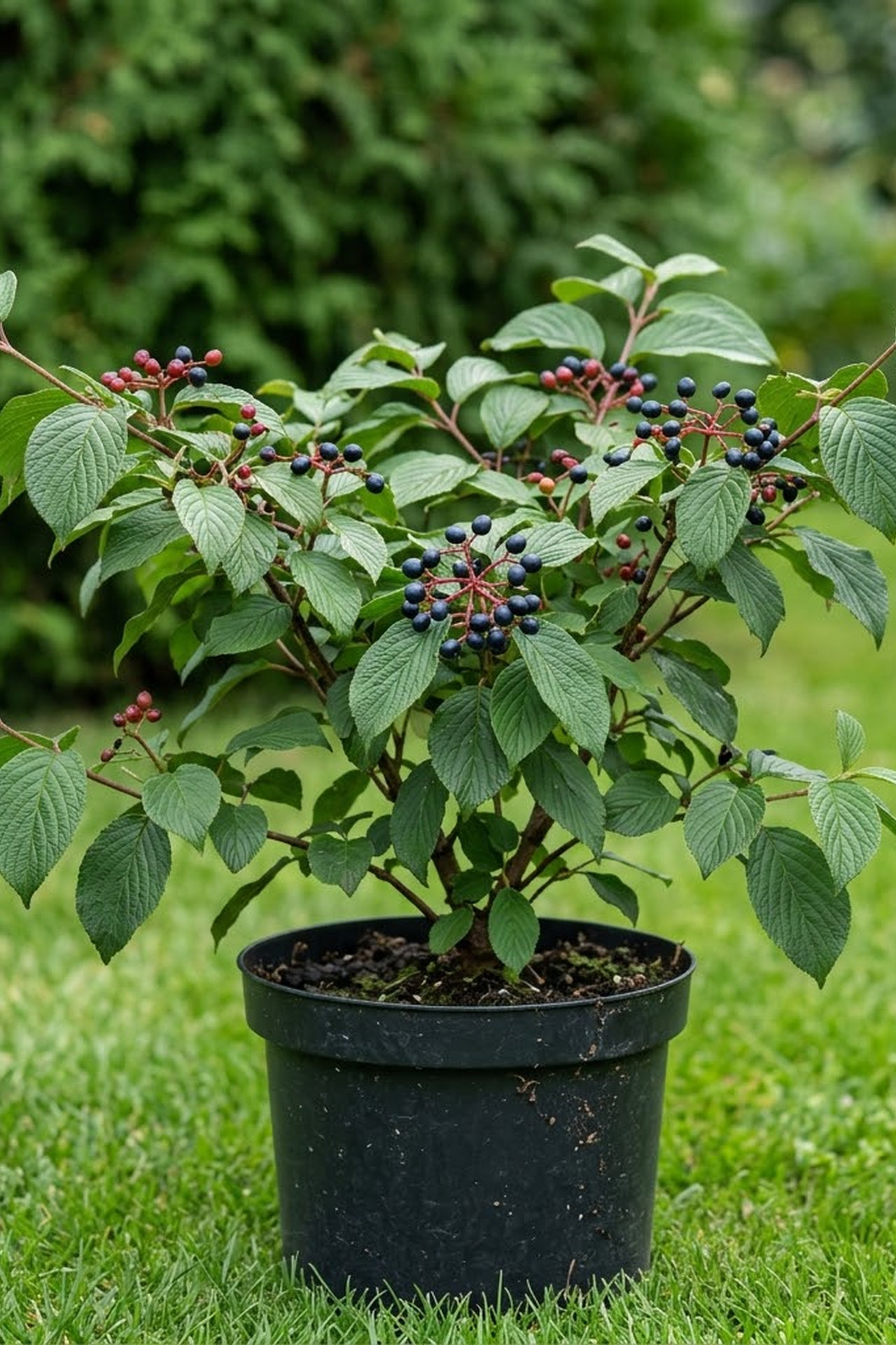 Медленнорастущий кустарник с широкой характерной кроной и горизонтальными ветвями. Вырастает до 2-3 м выс. и шир. Листья эллиптические, длиной 7-10 см, осенью фиолетово-коричневые. Цветки белые, декоративные, собраны в плоские соцветия с большими цветками по краям. Предпочитает свежие перегнойные почвы и защищенные места.