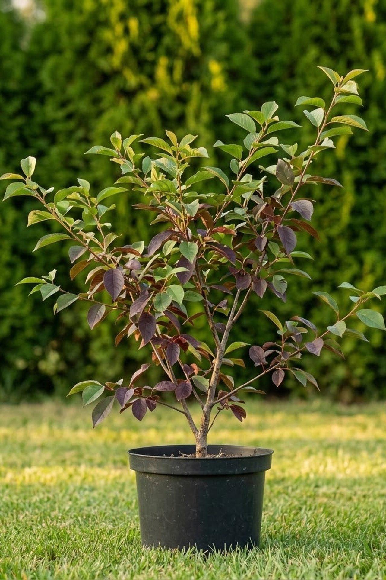 - Листья декоративные, весной зелёные, летом меняют окраску на тёмно - пурпурную
