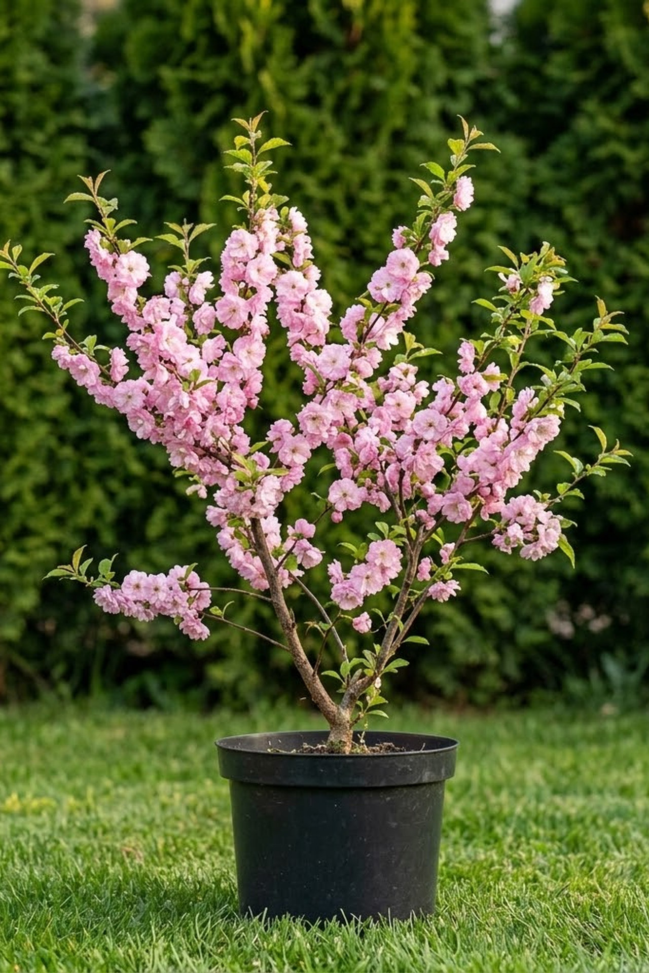 - Цветки густомахровые (34—44 лепестка), розовые, диаметром 25—35 мм, которые выглядят очень эффектно и оригинально, благодаря слегка закрученным лепесткам. Цветет до распускания листьев во второй половине апреля-начале мая, в течение 2,5 недель.
