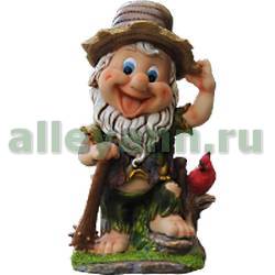 Фигура садовая ГНОМИК В ШЛЯПКЕ С ПОПУГАЕМ в Чебоксарах