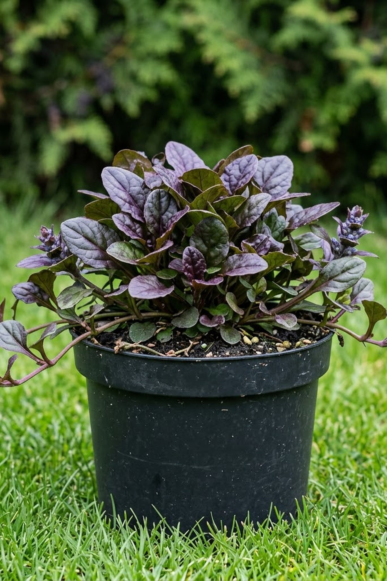 - блестящие пурпурные, высотой 7-10см,листья прикорневой розетки сужены в длинный черешок, стеблевые — сидячие или короткочерешковые, широко- или обратнояйцевидные со слегка волнисто-выемчатыми краями.Прицветные листья цельные, у основания часто синеватые