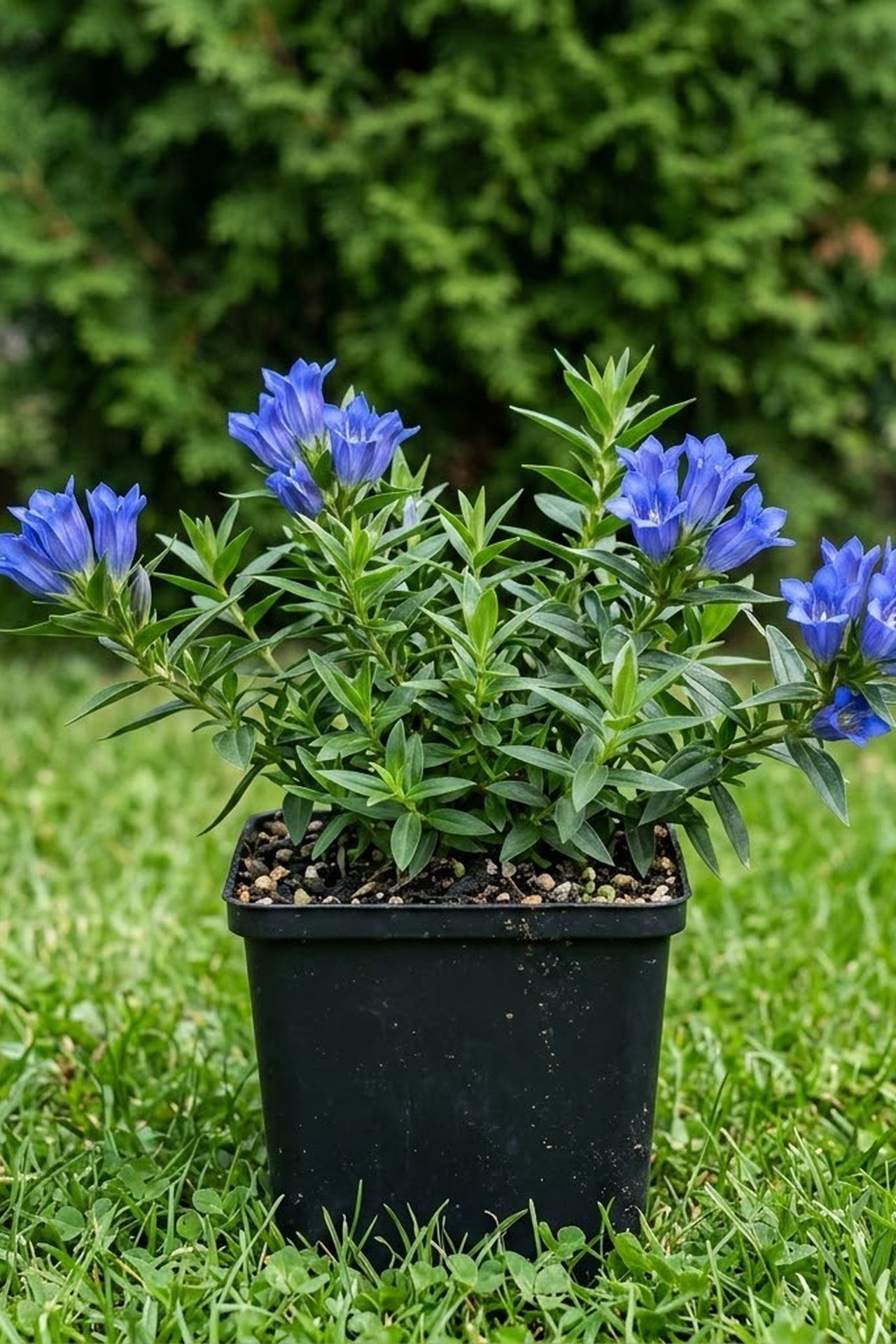 - цветы собраны в оконечные пучки до восьми цветков.Чашечка трубчатая, 1,2 см длиной, с пятью одинаковыми линейными долями приблизительно такой же длины, как и трубка.Венчик колокольчатой формы, с пятью долями, складки глубоко вырезаны на множество частей.Цветы синие с заметно-беловатым горлом и с темными полосками и пятнышками