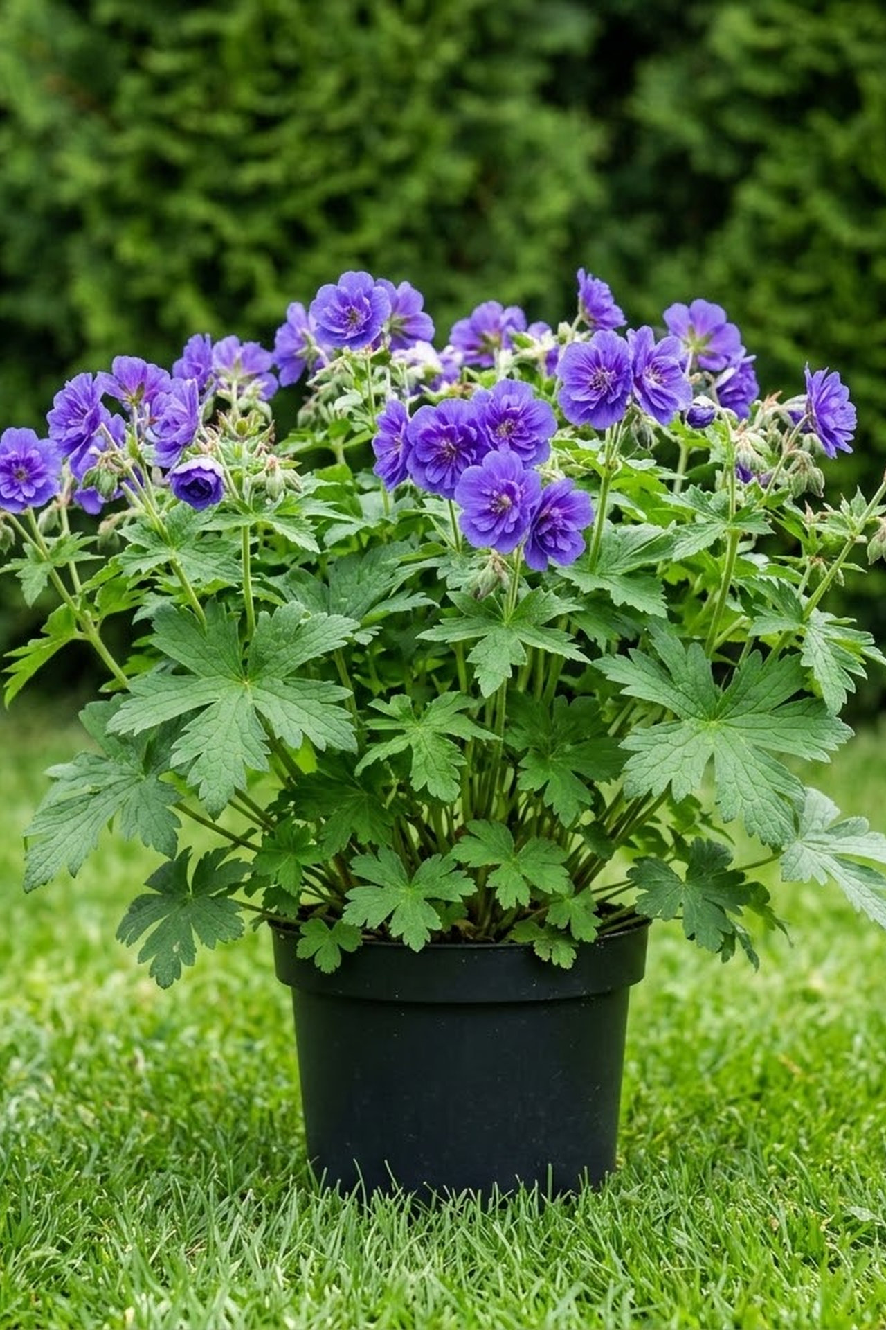- травы, другие виды гераней, папоротники, вербейник точечный, пионы, ирис сибирский, астильба