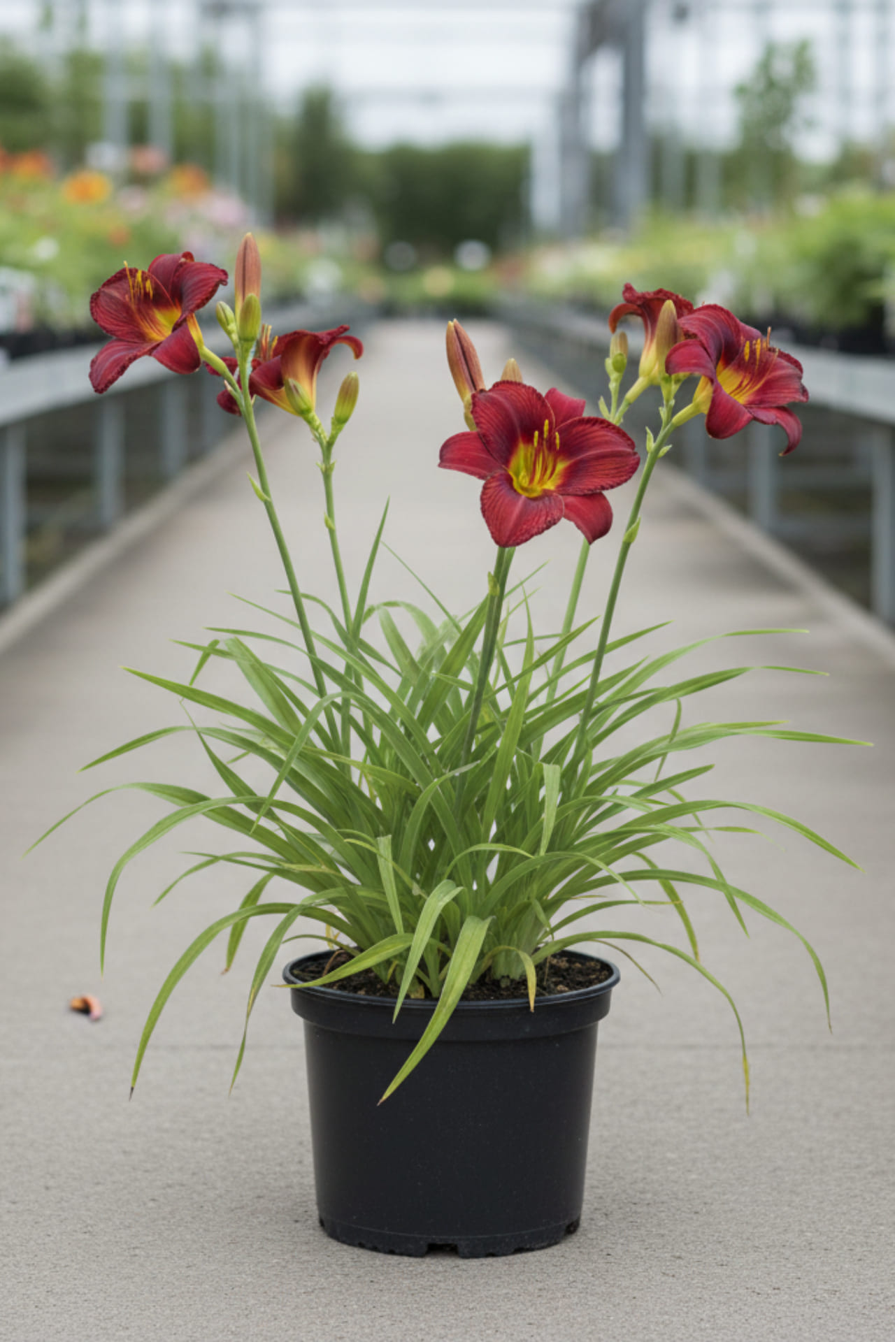 - цветки диаметром 7 см, клюквенно-красные с жёлтым горлом.