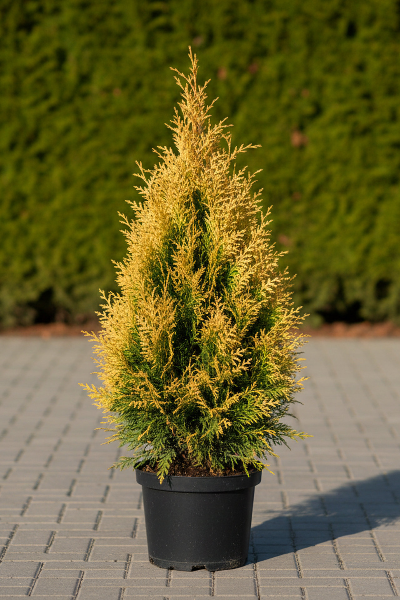 лучшая золотистая форма от популярного сорта Smaragd. Хвоя золотисто-жёлтая в течение всего года, крона почти идеальная коническая, к 10-ти годам высота 2 м. Предпочитает солнечные места, в тени золотистый оттенок хвои исчезает. Не переносит засухи. Хорошо переносит стрижку. Для одиночных и групповых посадок, отлично смотрится в живой изгороди.