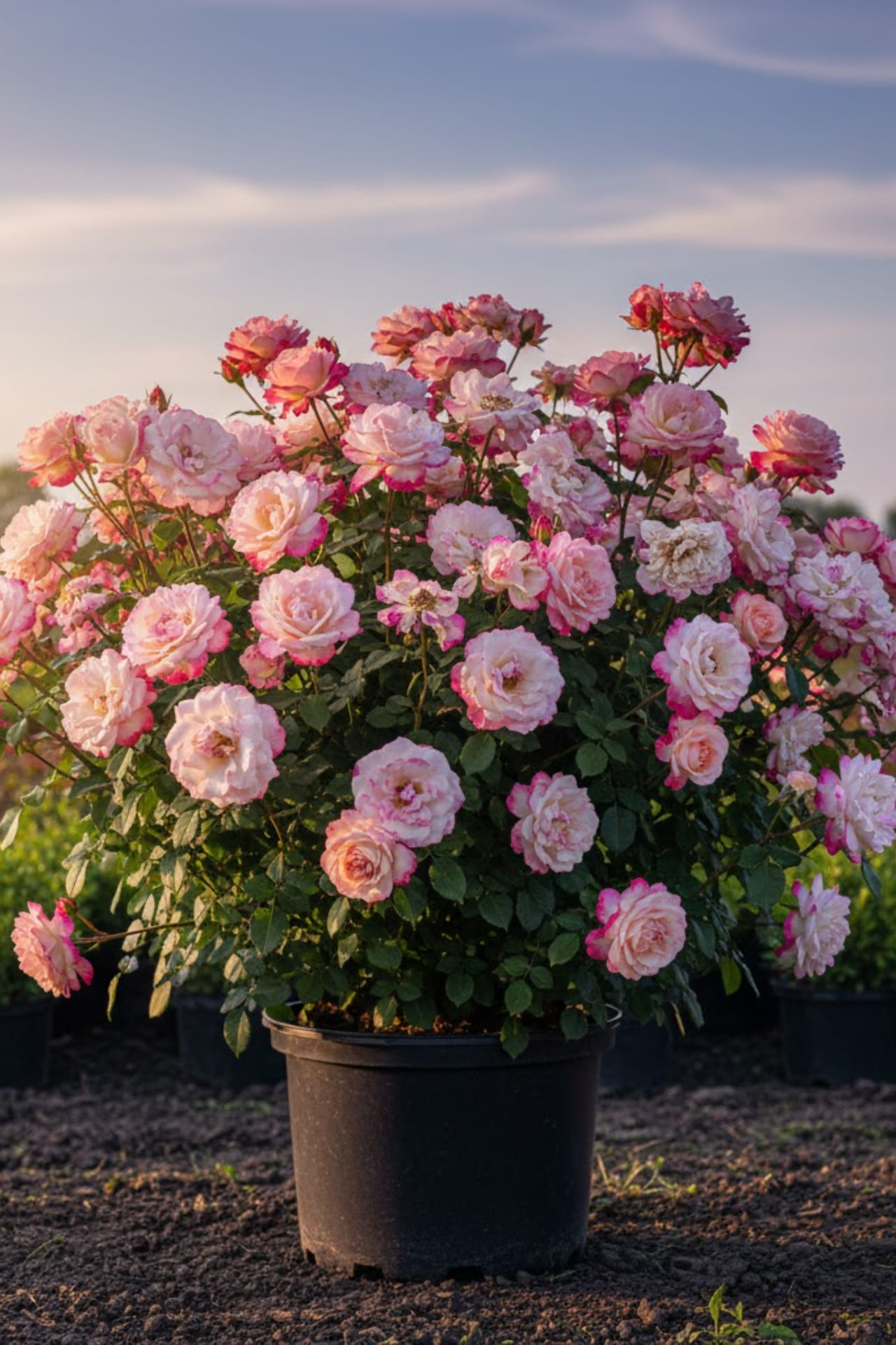 - Цветки кремово-белые, с розовой окантовкой лепестков