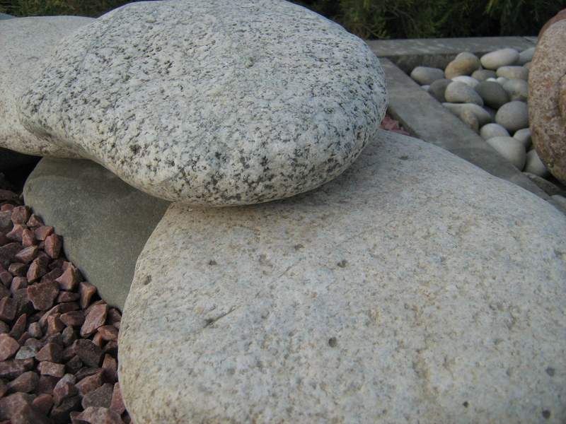 Галька из осадочных горных пород. Форма Эллипсоидная, достаточно плоская. В основной массе Светло-серого цвета с вкраплениями черного и темно серого цвета.